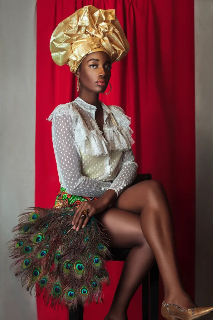 Look at the images below, as each one of them describes an unparalleled originality in its designs and the idea behind craft. The first signifies pride and self-possession of Black heritage, as her golden headpiece likes to shine like a crown. It reminds the viewers of Black’s rich culture, which they like to display with pride and honor.